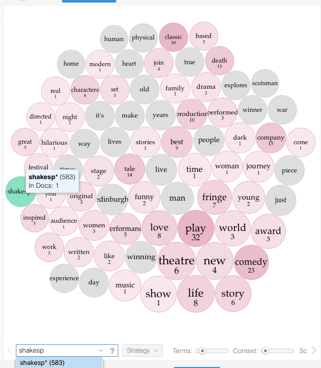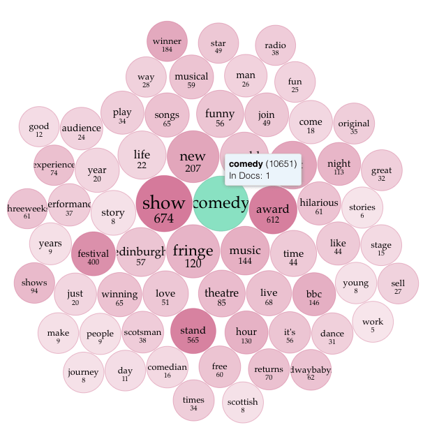 We can do the same for the word “comedy” – people do like to talk about their awards. Obviously, if you are a fan of the Fringe, you could probably have guessed all this.