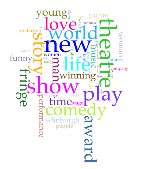 This type of linguistic analysis and visualisation can be a useful tool to think about how language is used, and what is expected in that genre. If you only have 100 words to fill up a show description, will you stand out if you describe it as a “best new comedy award-winning Edinburgh fringe show, about life”? Does the audience expect that, though, to situate it? It’s probably worth throwing in some old tried and tested to provide the framework, but some newness, and originality, in there too. Bring out your slang, your local, your unique. Be more aware of historical and implicit biases. Be the change you want to see in the Fringe. It’s the only way to stand out.