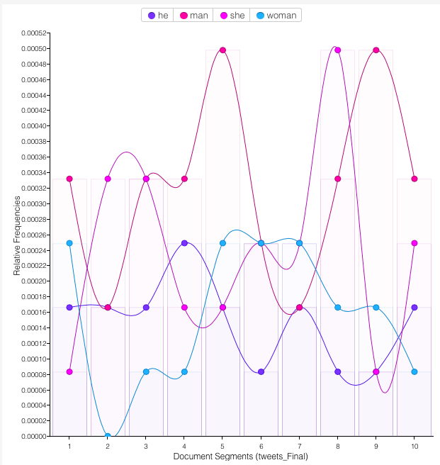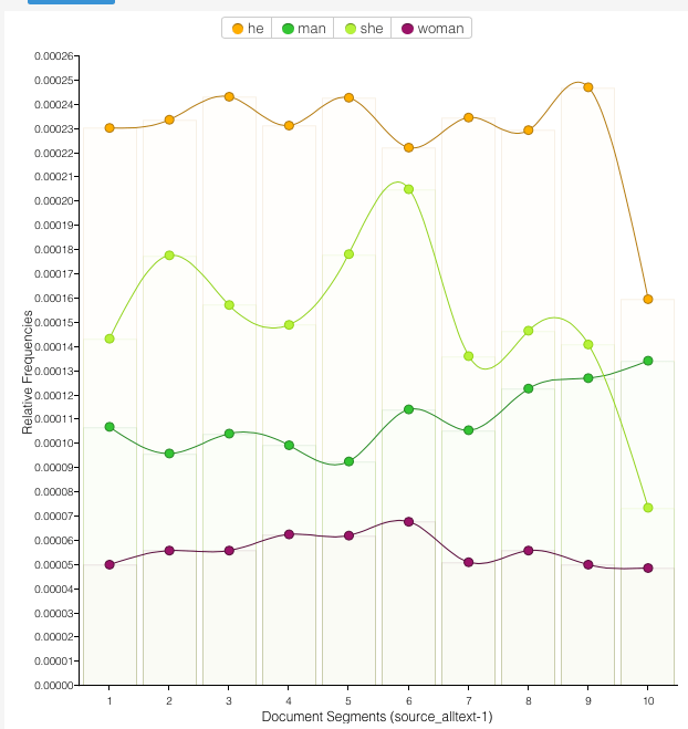 We can also use Voyant to look at the correlates – words around – words. How do “he is” and “she is” differ? You can write linguistic dissertations on this stuff…